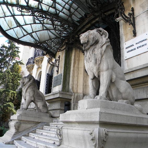 Cladirea in care se afla azi Muzeul National "George Enescu" a fost construita dupa planurile arhitectului Ion D. Berindey in stilul baroc francez al epocii Ludovic al XVI-lea, pentru Gheorghe Grigore Cantacuzino, fost presedinte al Consiliului de Ministri, poreclit "Nababul" pentru impresionanta sa avere. Dupa moartea "Nababului", cladirea a revenit fiului sau Mihai care, decedand în 1929, a lasat-o prin testament sotiei sale Maruca, recasatorita in 1939 cu George Enescu. Edificiul a gazduit in preajma celui de al doilea razboi mondial, presedintia Consiliului de Ministri. In anul 1956, in Palatul Cantacuzino a fost inaugurat Muzeul Memorial "George Enescu" dedicat marelui compozitor roman, devenit dupa 1990 muzeu national. Edificiul a fost declarat monument de arhitectura si este format din patru niveluri: un subsol inalt alcatuind soclul constructiei, un parter cu ferestre in arc de cerc si cu balustrade de piatra, un etaj cu ferestre drepte prevazute cu balconase din fier forjat si o mansarda cu lucarne bogat ornamentate. Fatada sa are ca element dominant intrarea, precedata de trepte ample, din marmura, strajuita de doi lei din piatra si ocrotita de o marchiza in forma de scoica. Dintre spatiile prevazute in somptuosul interior al cladirii se remarca sala centrala de la parter, cu picturi murale de N.Vermont si G.D. Mirea si coloane de marmura roz. In anii ’40, palatul a adapostit sediul Presedintiei Consiliului de Ministri, iar apoi, din 1947, Institutul de Studii Romano-Sovietice. Dupa moartea lui George Enescu (1955), sotia sa a donat imobilul statului roman, cu scopul infiintarii muzeului dedicat memoriei compozitorului. Astfel, din 19 iunie 1956, aici functioneaza Muzeul “George Enescu”. Din 2007, Palatul Cantacuzino este inclus pe lista monumentelor Patrimoniului European. Expozitia permanenta a muzeului este desfasurata in trei sali ale palatului si prezinta cronologic, marturii ale unei insemnate biografii: fotografii, manuscrise, instrumente muzicale, obiecte si documente legate de viata si activitatea muzicianului.Adresa: Strada Calea Victoriei