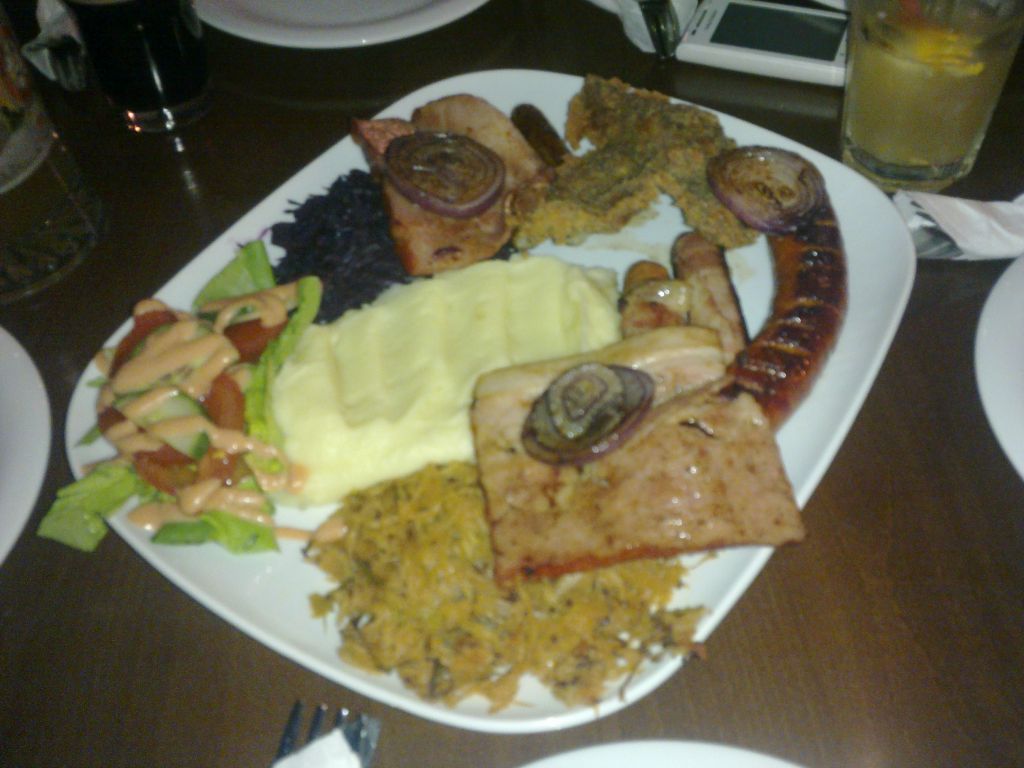 Am fost vineri cu niste amici in Klausen Burger din Central pentru un concert Live cu o formatie de covers : Radu's Cover band cred ca au numele. Am comandat si un platou Mix Bavarez pentru 2 persoane carer are pe langa carnati de 3 feluri , sunca afumata , niste salate aromate, care merg cu excelent cu o bere rece la tap, atat blonda cat si nefiltrata. Klausen Burger din Cluj au si propria lor bere ( facuta on site) dar mie personal nu prea imi place. In rest un local foarte bun.